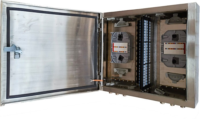 FXG120矿用光纤配线箱适用于煤矿及非煤矿山井下光缆与井下光纤通信设备的配线连接,通过矿用光纤配线箱内的熔纤盘,用光尾纤跳线引出光信号,实现光纤配线功能。适用于煤矿井下光缆和配线尾纤的保护性连接,也适用于矿用光缆和配线尾纤的保护连接,同时也适用于光纤接入网中的光纤终端接点应用,光纤配线之间和设备之间光缆的维护和管理。