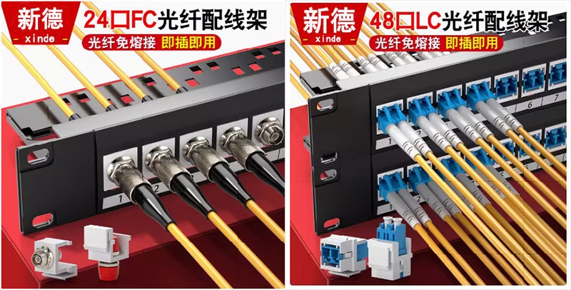 在1U的空间最多可端接48芯LC光接口或(24个双口LC或24个ST接口、SC接口、FC接口)光纤连接头;